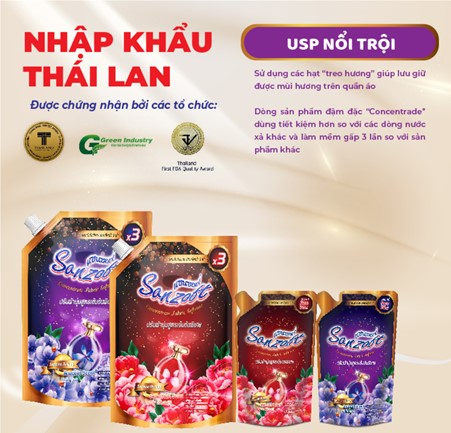 - Tinh dầu nước hoa cao cấp: Hương thơm sang trọng, tinh tế, lưu hương bền lâu, khử mùi mồ hôi trên áo quần.