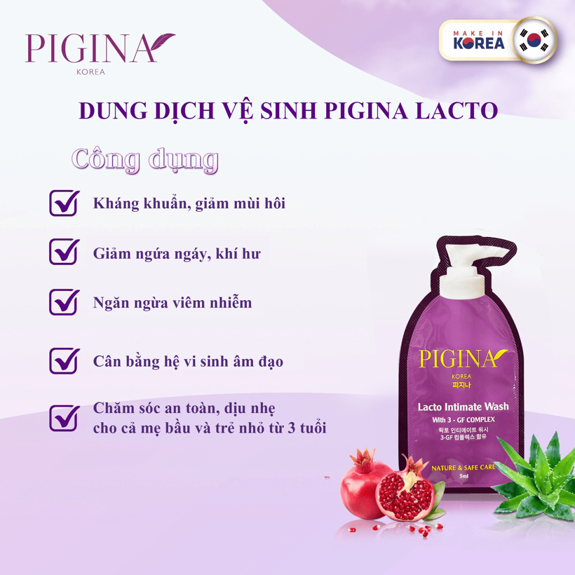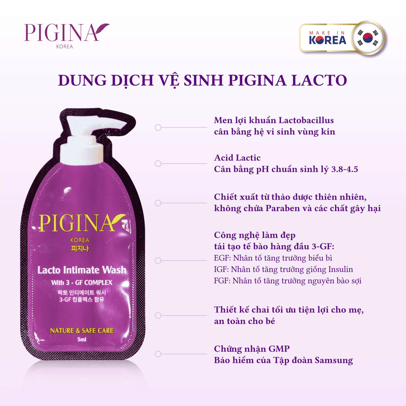 Dung dịch vệ sinh Combo 5 Gói gel Pigina 5ml - Pigina Lacto Intimate Wash