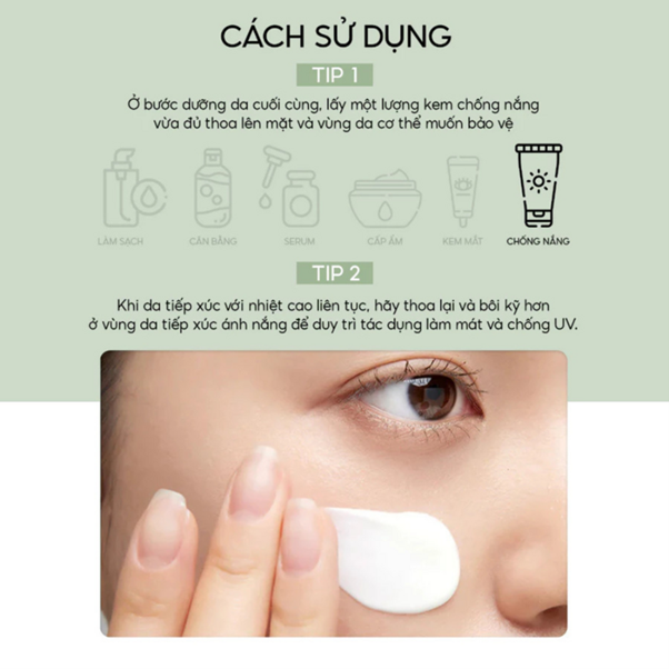 - Kem chống nắng lai giúp bảo vệ da khỏi tia tử ngoại gây hại đồng thời dưỡng ẩm và hạ nhiệt tức thì (giảm 4.2’C) cho làn da.