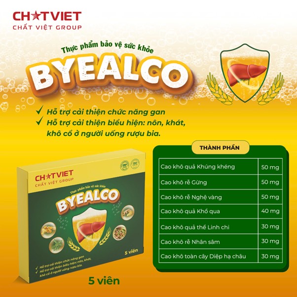 BYEALCO là sản phẩm thiên nhiên với công thức đặc biệt được nghiên cứu chiết xuất từ các dược liệu quý. Sản phẩm giúp bảo vệ gan, tăng cường sức khỏe và giảm thiểu tác hại của rượu bia. Sản phẩm được sản xuất tại nhà máy đạt chuẩn GMP, ISO - Đạt các tiêu chuẩn nghiêm ngặt của Bộ y Tế Việt Nam và các tiêu chuẩn Quốc tế.